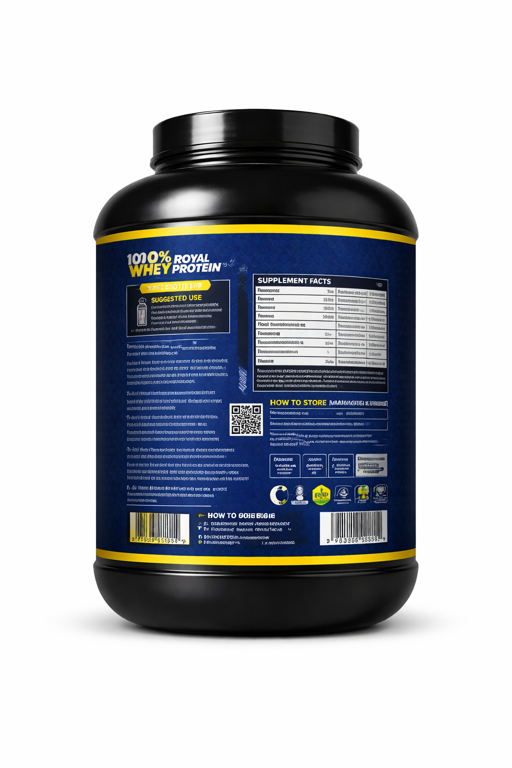Proprietary Protein blend (Whey Protein concentrate, Whey Protein Isolate), High quality ultra filtered whey protein concentrate, Minerals, BCAA, Trace elements and approved colors, natural identical flavors, Sucralose.